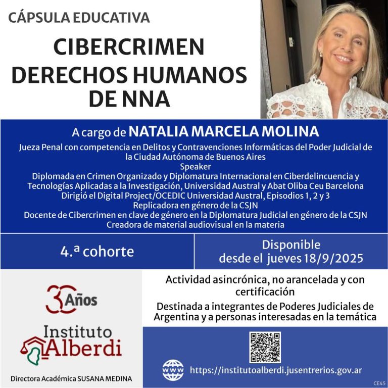 Más información: https://institutoalberdi.jusentrerios.gov.ar/events/capsula-educativa-cibercrimen-derechos-humanos-de-nna/