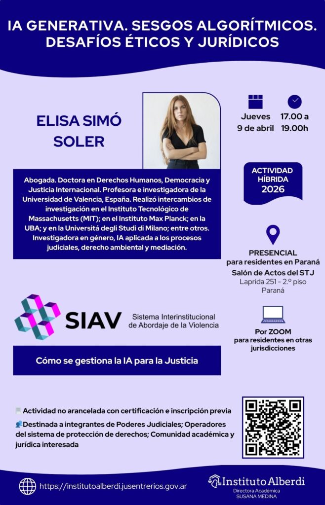 🌐 Más información: https://institutoalberdi.jusentrerios.gov.ar/events/ia-generativa-sesgos-algoritmicos-desafios-eticos-y-juridicos/