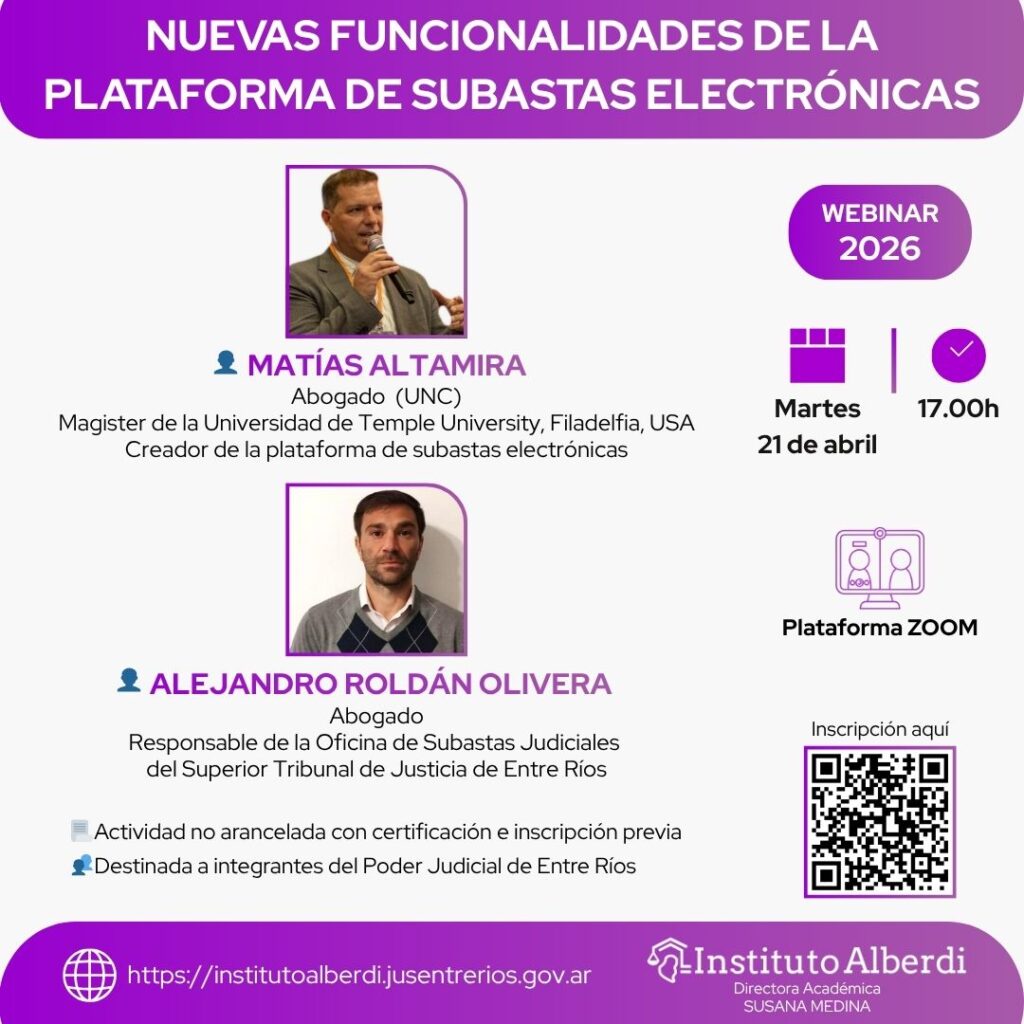 🌐 Más información: https://institutoalberdi.jusentrerios.gov.ar/events/webinar-nuevas-funcionalidades-de-la-plataforma-de-subastas-electronicas/