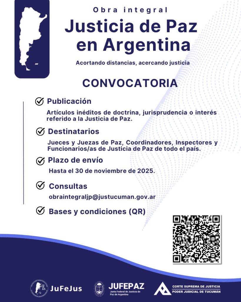 A través de un libro federal y participativo, se propone reunir artículos, experiencias, doctrina, jurisprudencia y marcos normativos que reflejen la diversidad, riqueza y actualidad de la Justicia de Paz en cada provincia.