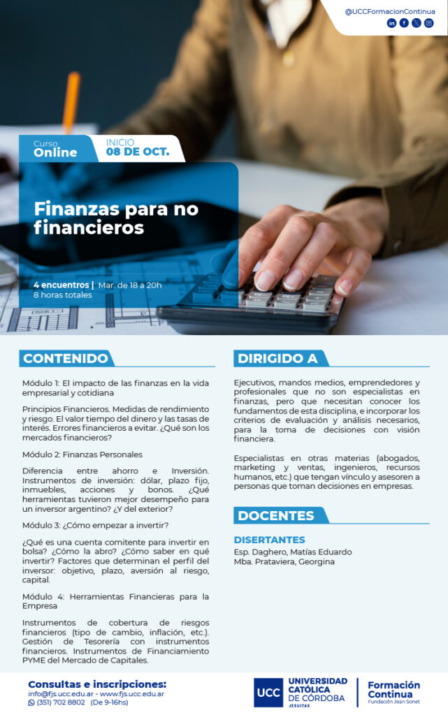 Este curso está dirigido a ejecutivos, mandos medios, emprendedores y profesionales que no son especialistas en finanzas, pero que requieren comprender los fundamentos de esta disciplina. Es especialmente recomendado para especialistas en otras áreas (abogados, marketing, ventas, ingeniería, recursos humanos, entre otros) que asesoran a personas que toman decisiones en empresas.