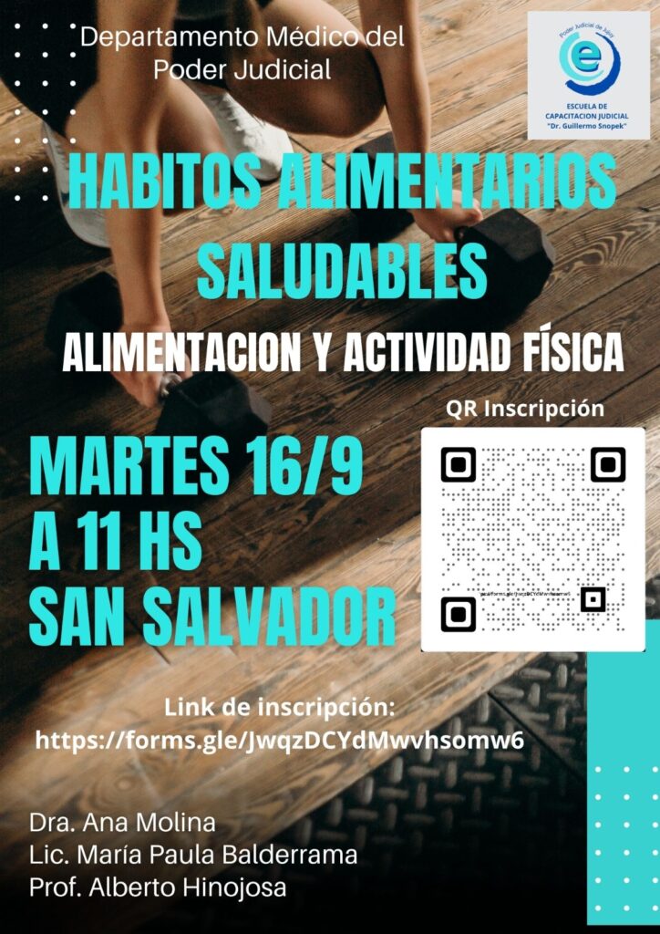 Organizado por la Escuela de Capacitación Judicial “Dr. Guillermo Snopek” y el Departamento Médico del Poder Judicial, se llevará a cabo el cuarto módulo de la charla denominada «Hábitos Alimentarios Saludables», en la ciudad de San Salvador de Jujuy.