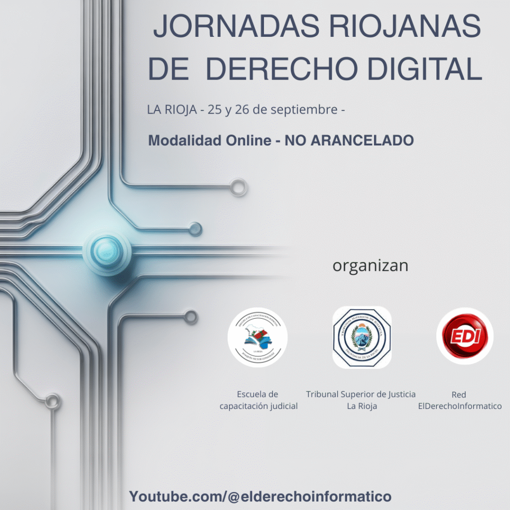 Inscripciones y más información: https://elderechoinformatico.com/jornadas-riojanas-de-derecho-digital-25-y-26-de-septiembre/