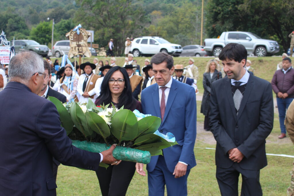 Posteriormente, se entonaron las estrofas del Himno Nacional Argentino, y seguidamente se realizó la colocación de ofrendas florales; homenaje a cargo del Gobernador de la Provincia, la Jueza de la Suprema Corte de Justicia Dra. Mercedes Arias, el Jefe de la Guarnición Ejército Jujuy, el Intendente de Yala y el Vicepresidente Segundo de la Legislatura, Martín Fellner.