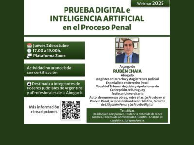 La publicación por parte de la Escuela de Capacitación del Poder Judicial “Dr. Guillermo Snopek” de la capacitación precedente, se realiza con el único objeto de informar a los operadores jurídicos, las ofertas académicas que llegan a su conocimiento. La Escuela, no participa de ningún modo en su organización, definición o calidad del contenido, […]