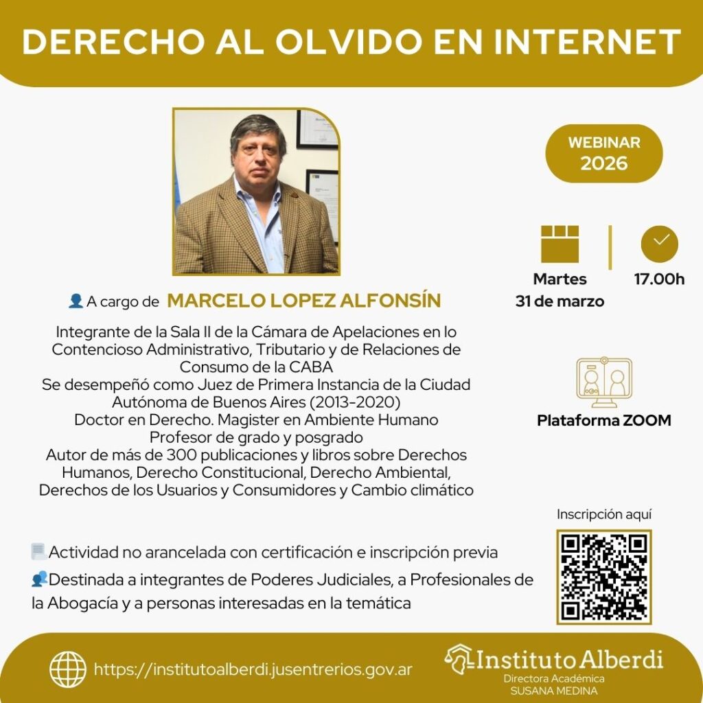 🌐 Más información: https://institutoalberdi.jusentrerios.gov.ar/events/webinar-derecho-al-olvido-en-internet/