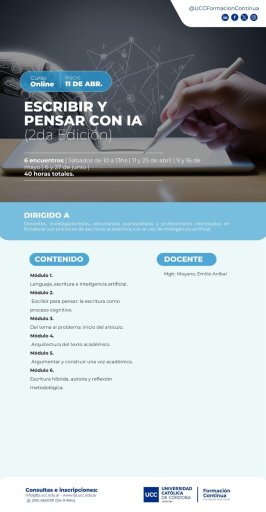 Para más información: https://fjs.ucc.edu.ar/escribir-y-pensar-con-ia-2026-4