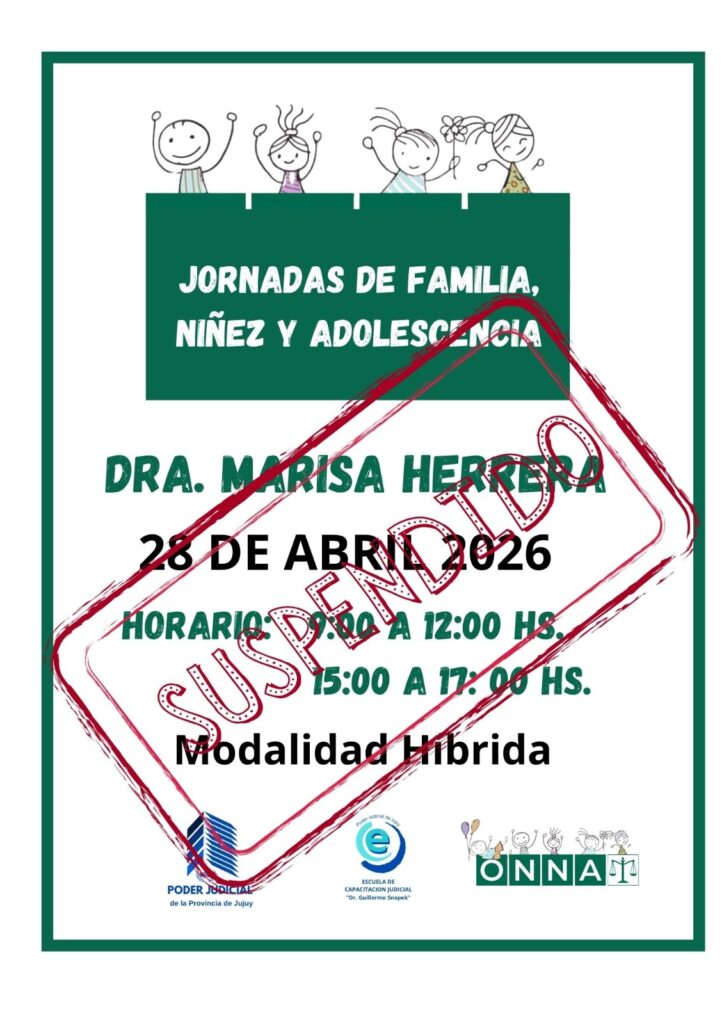 Por cuestiones ajenas a la Escuela de Capacitación “Dr. Guillermo Snopek”, la Jornada de Familia, Niñez y Adolescencia se suspende hasta nuevo aviso.