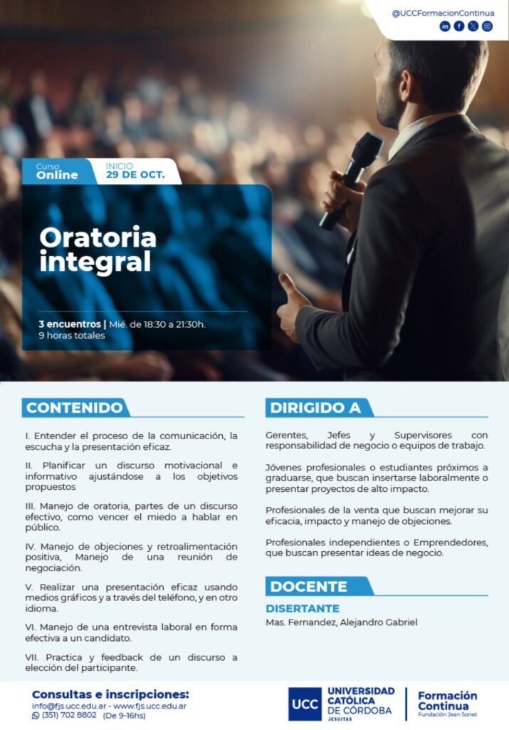 - Manejo e oratoria, partes de un discurso efectivo, como vencer el miedo a hablar en público.