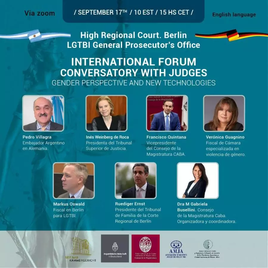 Para cualquier consulta sobre la actividad deberán enviar mail a: mbusellini@jusbaires.gob.ar El link para inscribirse es el siguiente: ¡Actividad para agendar! Declarada de interés por JUFEJUS INTERNATIONAL CONVERSATORY WITH JUDGES Gender pespective and new Technologies Inscripcines/enrollments https://forms.gle/jAXhZeXZ4m8neyVr8 17 de septiembre 10hs argentina Actividad por zoom