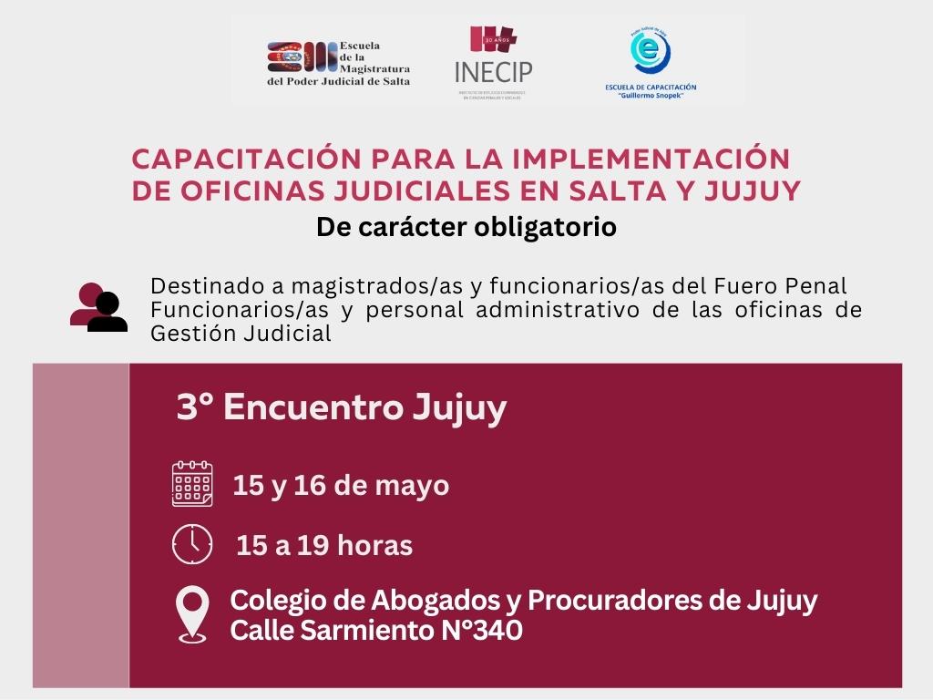 COMIENZA EL 3° ENCUENTRO DEL PROGRAMA DE CAPACITACIÓN PARA LA IMPLEMENTACIÓN DE LAS OFICINAS JUDICIALES EN JUJUY