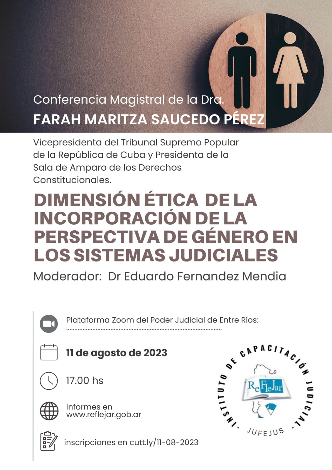 Disertante: Dra. Farah Maritza Saucedo Pérez, Vicepresidenta del Tribunal Supremo Popular de la República de Cuba y Presidenta de la Sala de Amparo de los Derechos Constitucionales.