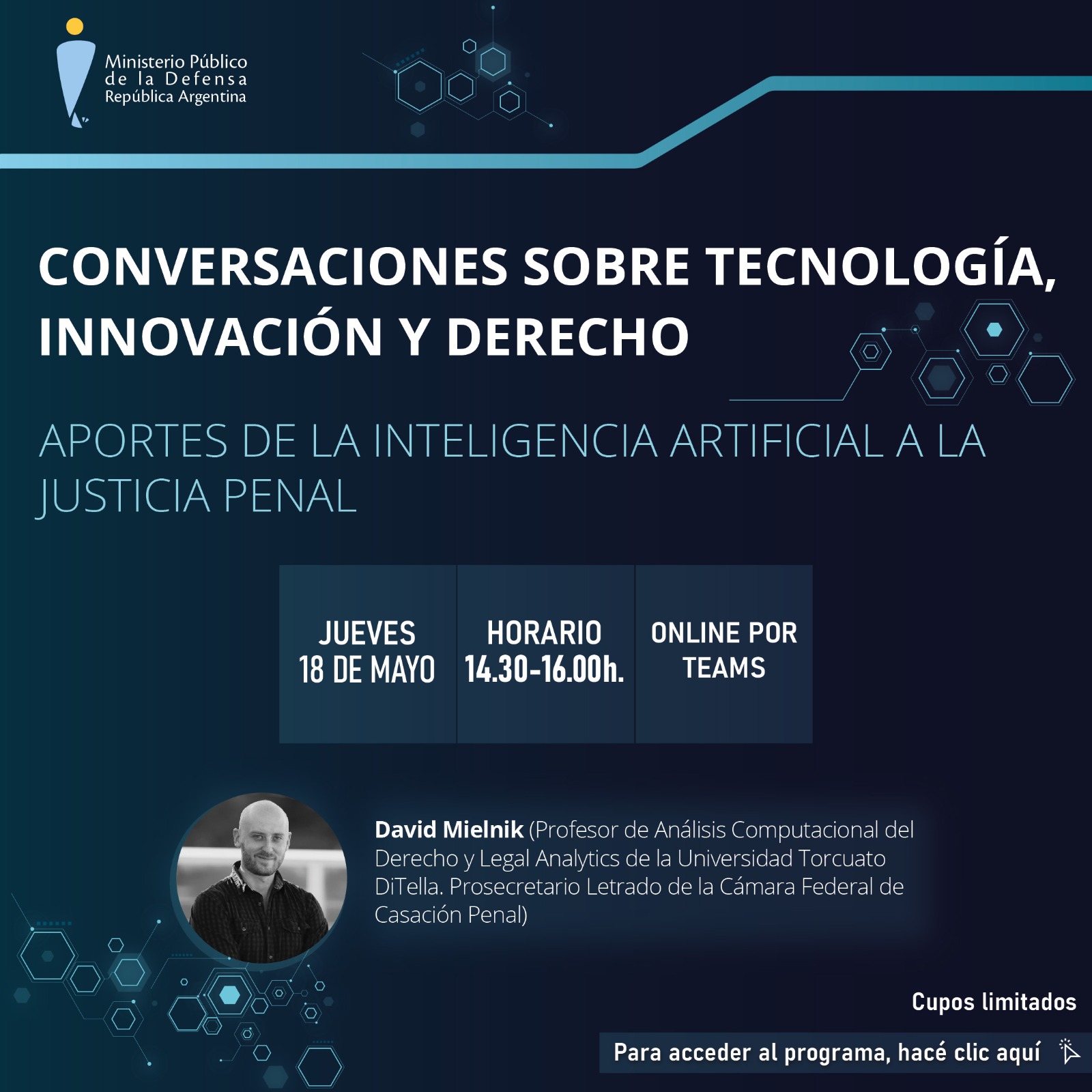 Fecha y horario: jueves 18 de mayo, de 14:30 a 16:00 horas.