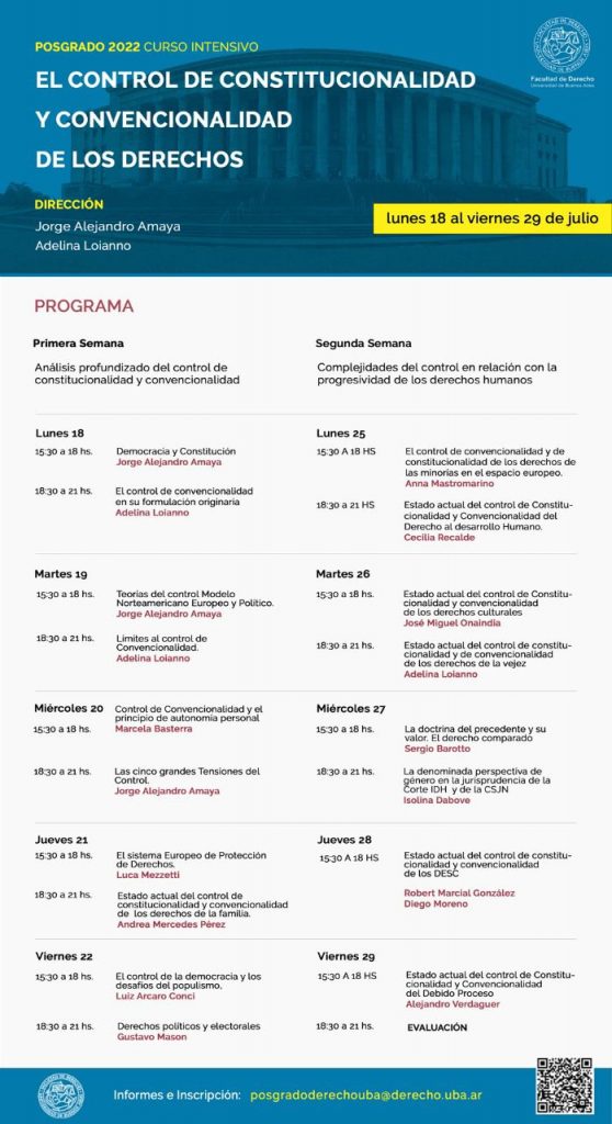 Desde el lunes 18 al viernes 29 de julio del 2022. Informes e Inscripción: posgradoderechouba@derecho.uba.ar.