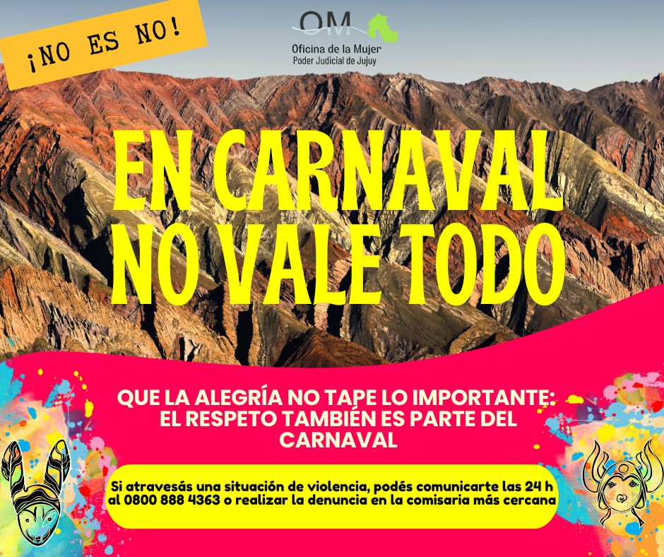 Para visibilizar y desnaturalizar situaciones de violencia en el contexto del Carnaval la Oficina de la Mujer del Poder Judicial de Jujuy invita reflexionar sobre la importancia de celebrar libremente manteniendo siempre el respeto y la responsabilidad de nuestras acciones.