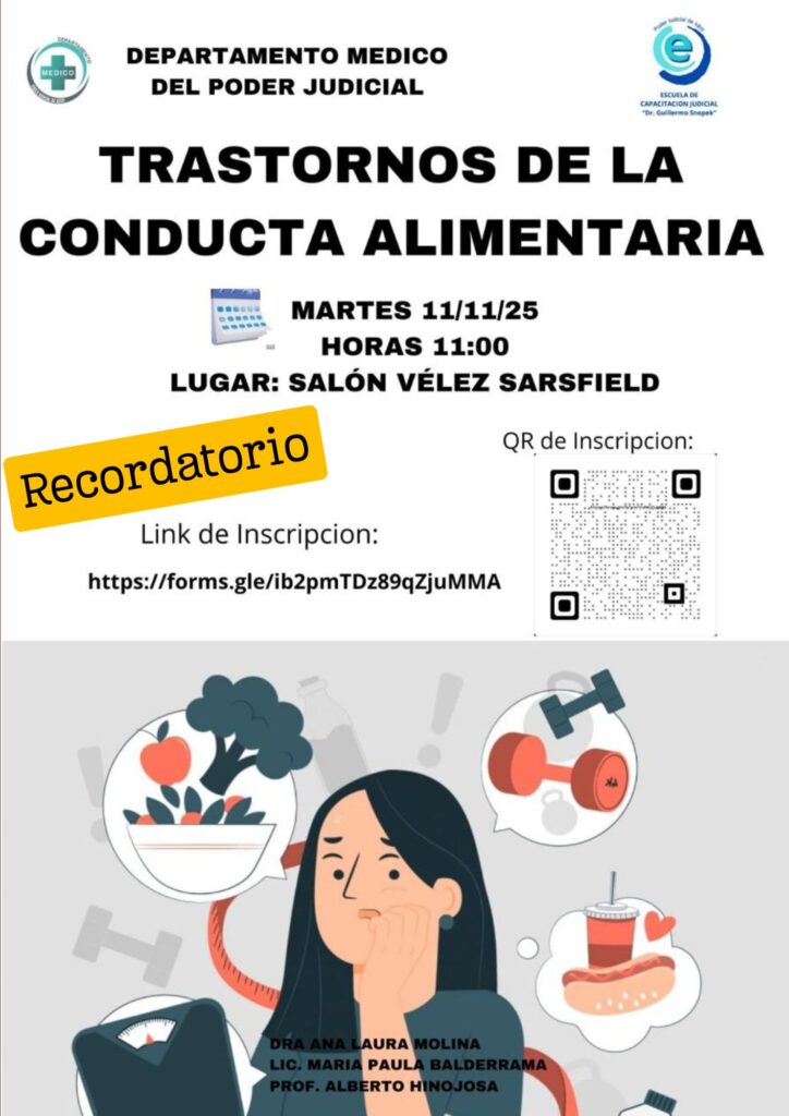 En el mismo, la Dra. Ana Laura Molina y la Lic. María Paula Balderrama abordarán la temática de «Trastornos de la conducta alimentaria». Mientras que el Prof. José Alberto Hinojosa estará a cargo de la realización de la pausa activa para promover la importancia de la actividad física.