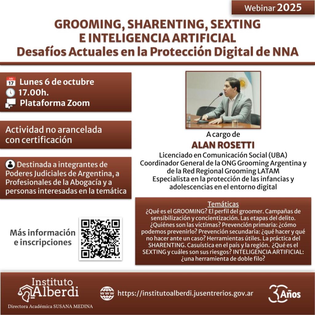📌 Webinar GROOMING, SHARENTING, SEXTING E INTELIGENCIA ARTIFICIAL. Desafíos Actuales en la Protección Digital de NNA